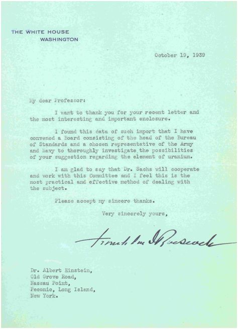 The Einstein-Szilard letter to President Roosevelt from August 2, 1945 is often regarded as the start of the Manhattan Project. This is more than an exaggeration. The letter is probably one of the most overrated documents in