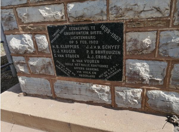 A British Force under Colonel Robert Kekewich consisting of largely of the 1st Scottish Horse commanded by Major Henry Leader captured the Boer Commando under Commandant Sarel Alberts on the farm Gruisfontein in the Lichtenburg district on 5 February 1902. This action is an example of the increasing effectiveness of British tactics in the late stages of the Anglo-Boer War 1899-1902.