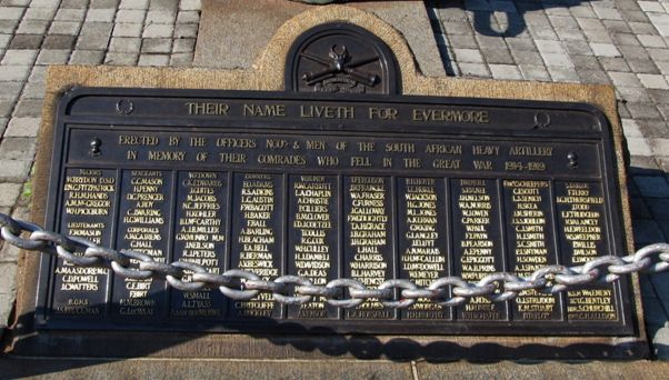 "Erected by the Officers, NCOs and Men of the South African Heavy Artillery