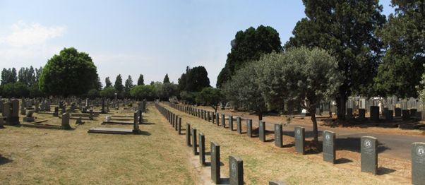 The cemetery is bisected by the road. The military graves are in the Northern (left) half of the cemetery. The office is in the Southern half. Follow the internal road for roughly 70 metres. The two rows of graves are on the right-hand side.