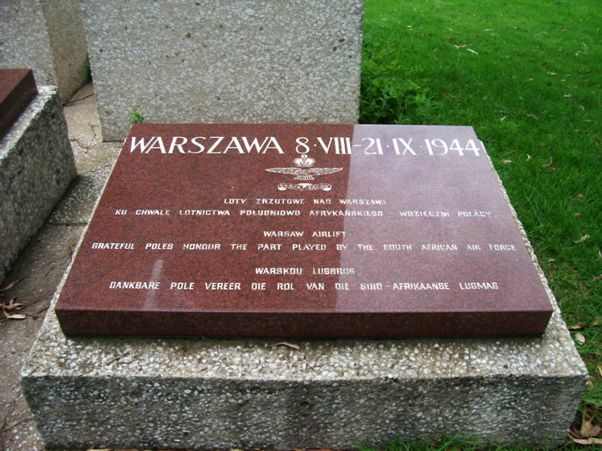 WARSZAWA 1.VIII - 21.IX,1944 WARSAW AIRLIFT GRATEFUL POLES HONOUR THE PART PLAYED BY THE SOUTH AFRICAN AIR FORCE