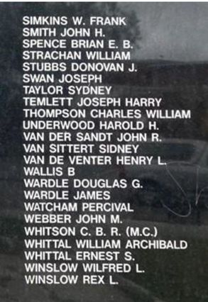 panel 6 of Queenstown's WW 1 Memorial Roll of Honour