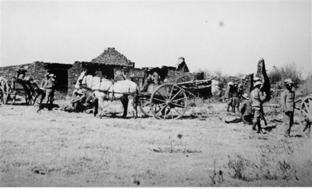 The Boshof landdrost district, where my grandfather farmed, became one such region. My grandfather's farm was not destroyed immediately. All the while his older sons Hamilton, Stoffel and Louis were fighting nearby. After several weeks, however, a British half company arrived at the family farm outside Boshof village. They told my grandfather they had come to destroy everything on the farm. The family and the farmhands were ordered to gather a few personal items together and to wait outside the house. Some young soldiers wandered through the house, helping themselves to things they could eat or articles to sell or to keep as soldiers in a foreign land so often do.