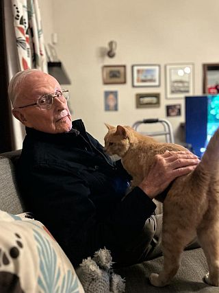 My father was startled and looked up at the steam engine. When he turned back to his cat it had fled from the noise. Within minutes the family were told to move into a closed luggage wagon which the locomotive had drawn up nearby. Although Frans ran about searching and calling its name, his mother called him into the carriage and they were on their way. All he had left was the cat's empty box.