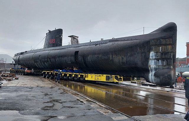 The move of a former South African Navy Daphne-class submarine from the Dockyard to its permanent display site at the new annex of the Naval Museum in Simon's Town must rank as one of the most significant achievements in local ship preservation and can only be described as truly monumental. This mega move was carried out by the heavy lift contractor Vanguard during July and involved a complex overland move of the 58 metre submarine with its estimated weight of almost 700 tons.