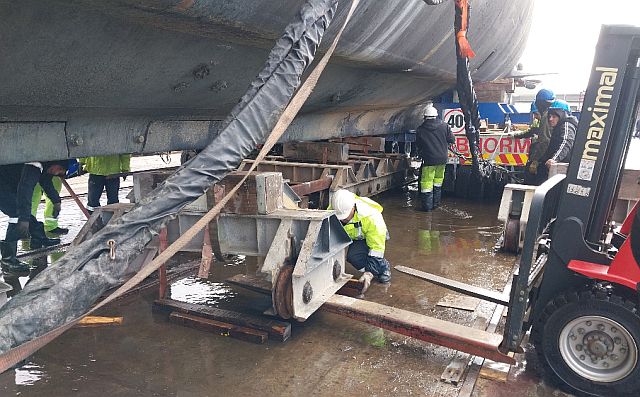The move itself was not without its challenges and tested the resolve of both the project team, dockyard workers and Vanguard, but all were reminded that "calm seas do not make skilled sailors!" At the first attempt, on the 8th of July, the submarine came off the blocks in the afternoon and the trek towards the museum site commenced.