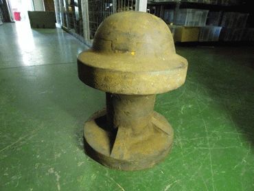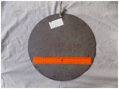 Using male and female presses, a 370 mm diameter manganese steel disc was placed above the female mould/press. A hydraulic press was released by the technician and the male press forced the disc plate into the female mould. The outer rim of the pressed helmet now often had corrugated ridges. The pressed helmet was stacked and then moved to the next station where the corrugated edges were trimmed. A hole was punched in the centre of the dome of the helmet and the distinctive three holes for the long-discarded neck veil in the back rim. The last process at TSP was the fitting of a supposedly anti-magnetic channel around the sharp rim. The channel was spot welded on the left of the wearer at 9 o'clock position. Remember that the whole helmet made from manganese steel and was anti-magnetic. A staff member from DGWS inspected and approved the quality of each batch ofhelmets.