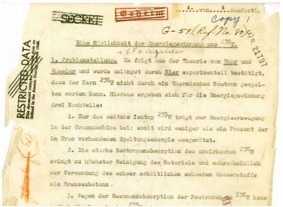 Why did German scientists fail to build either an atomic bomb or a functioning reactor during WW II? Was it incompetence, ignorance, or calculated choice? After the discovery of nuclear fission in December 1938 and the detection of secondary neutrons in April 1939, physical chemist Paul Harteck drew the attention of the Reich War Ministry to the military possibilities of this discovery. On 24 April 1939 he wrote: “We take the liberty of calling to your attention the newest developments in nuclear physics, which, in our opinion, will probably make it possible to produce an explosive many orders of magnitude more powerful than the conventional ones.[…] That country which first makes use of it has an unsurpassable advantage over the others.