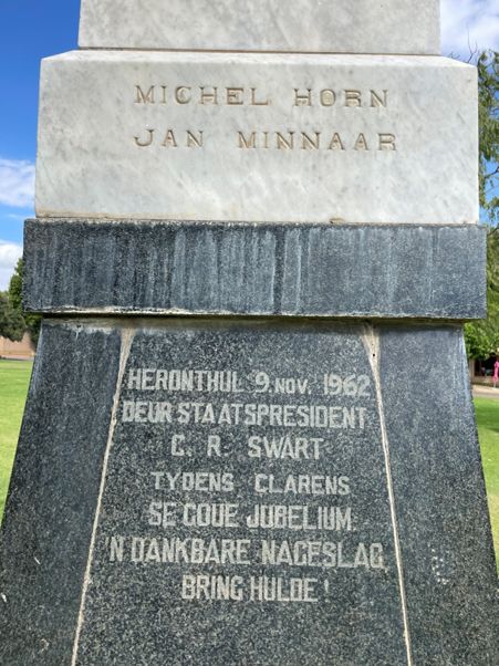 The Memorial was moved to its present location in Clarens when many rural memorials were relocated to increase their visibility.