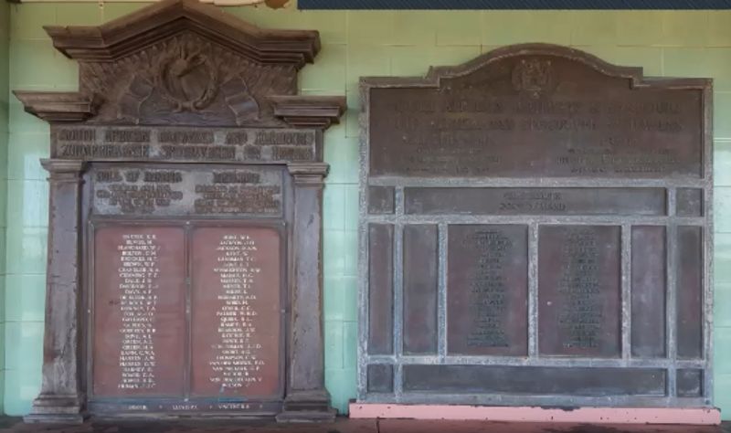 The War Memorial records the Rolls of Honour of officers and men of the South African Railways and Harbours in East London who gave their lives in either The Great War of 1914 to 1918 or in the World War of 1939 to 1945. The inscription for the Great War is in English and Dutch and for the 2nd World War in English and Afrikaans.