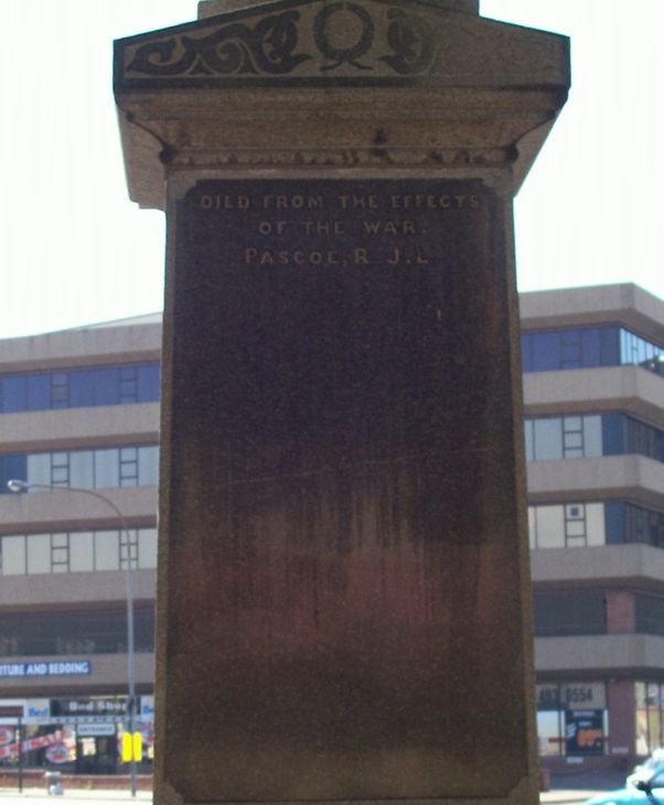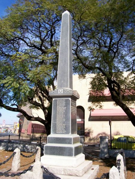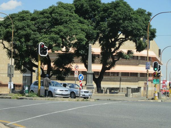 The memorial is on a small traffic island on the south-western corner of the intersection of Trump Street and Booysens Road.