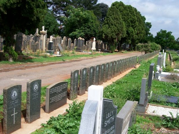 The cemetery is bisected by the road. The military graves are in the Northern (left) half of the cemetery. The office is in the Southern half. Follow the internal road for roughly 70 metres. The two rows of graves are on the right-hand side.