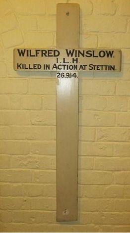The original marker of Private Wilfred Winslow's grave is in the St John's College Chapel in Johannesburg. His association with St John's College is assumed to have been through his service in Johannesburg's Imperial Light Horse Regiment.